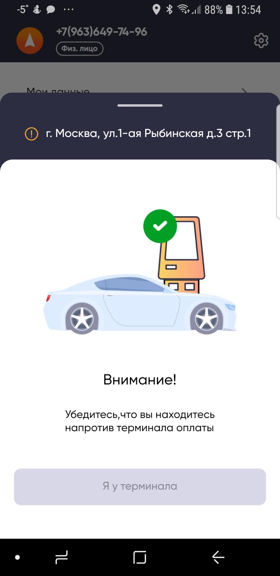 - Запустите приложение, отсканируйте QR-код на терминале не выходя из машины