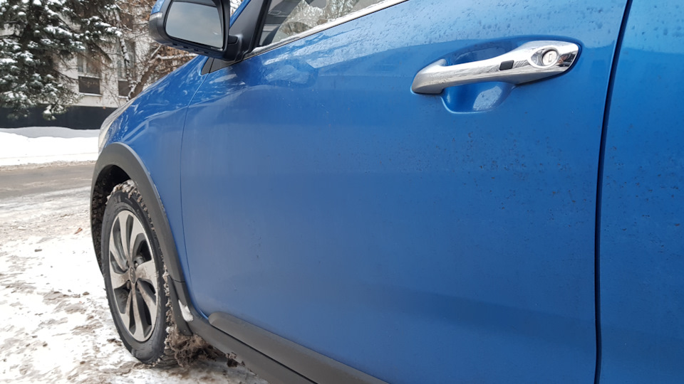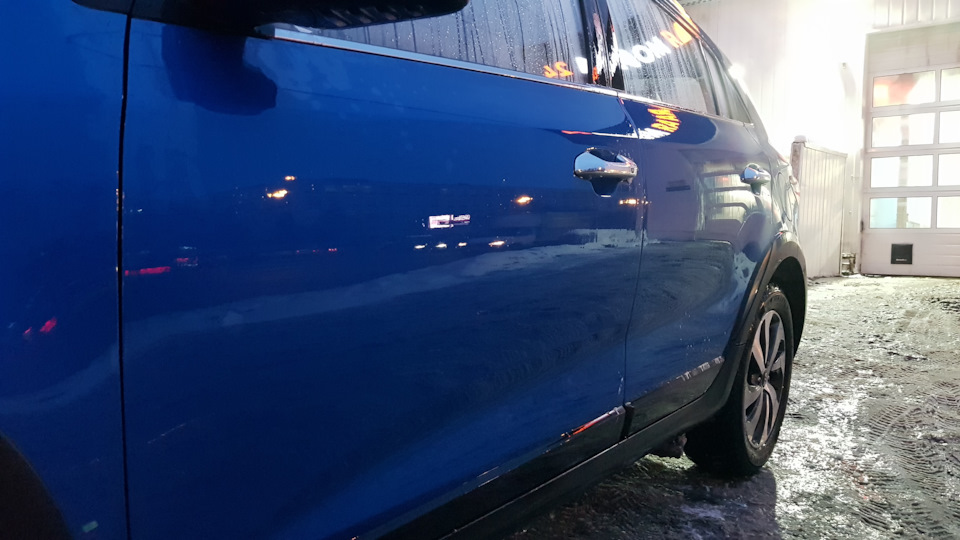 В этот момент голос из динамика прокричал, что мойка завершена и можно уезжать, а ворота стали плавно подниматься. Самое время посмотреть на наши контрольные точки: дверь, бампер и колёсный диск!