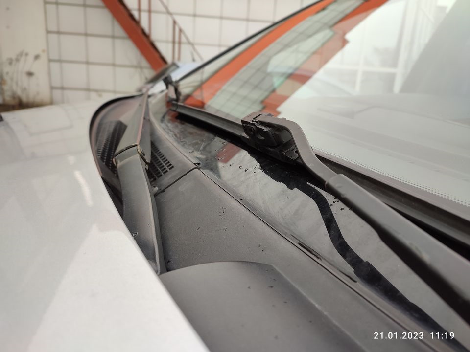 19. В нижней части лобового стекла, под щетками стеклоочистителя, остались непромытые участки