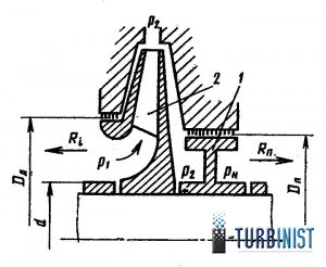 . Заметим, что первая ступень турбины активная, поэтому давление по обе стороны диска равнаР1 и силы давлений на кольцевую поверхность площадью