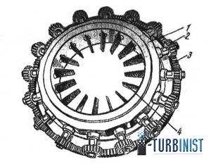 Статор турбокомпрессора составляют корпус с закрепленными в нем неподвижными элементами ступеней.