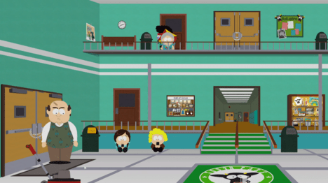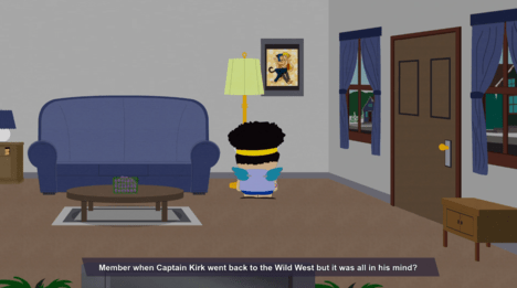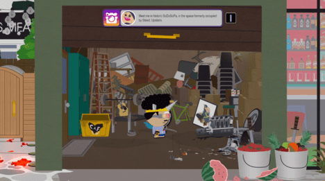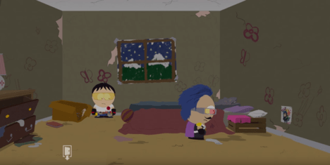 После эпичного боя — вламываемся в дом Картмана и бежим наверх. Боев пока не будет. Вообще. Наблюдаем сюжетные вставки, повествующие о истории Новичка, его непростых родителей, и чем вообще закончится эта каша.