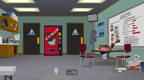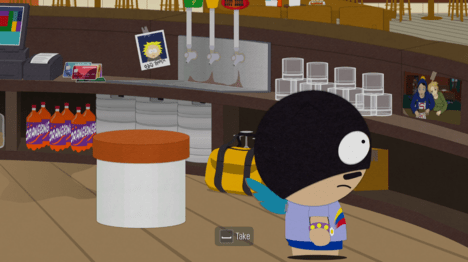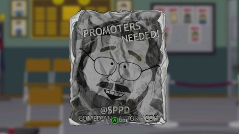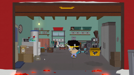 В гараже Картмана используйте Diabetic Rage Buddy Power, чтобы сломать трансформатор и добраться до плаката.
