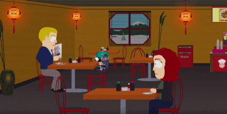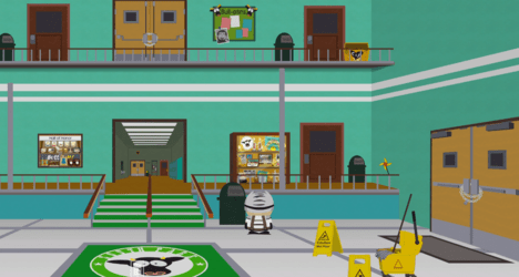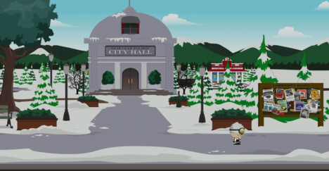В «Газете» South Park Gazette, на задней стене.