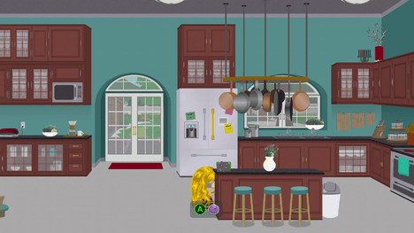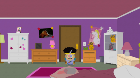 В доме Кенни поднимитесь в спальню его родителей. Используйте Snap N Pops, чтобы получить ключ (на стене). Откройте гараж Кенни и найдите постер.