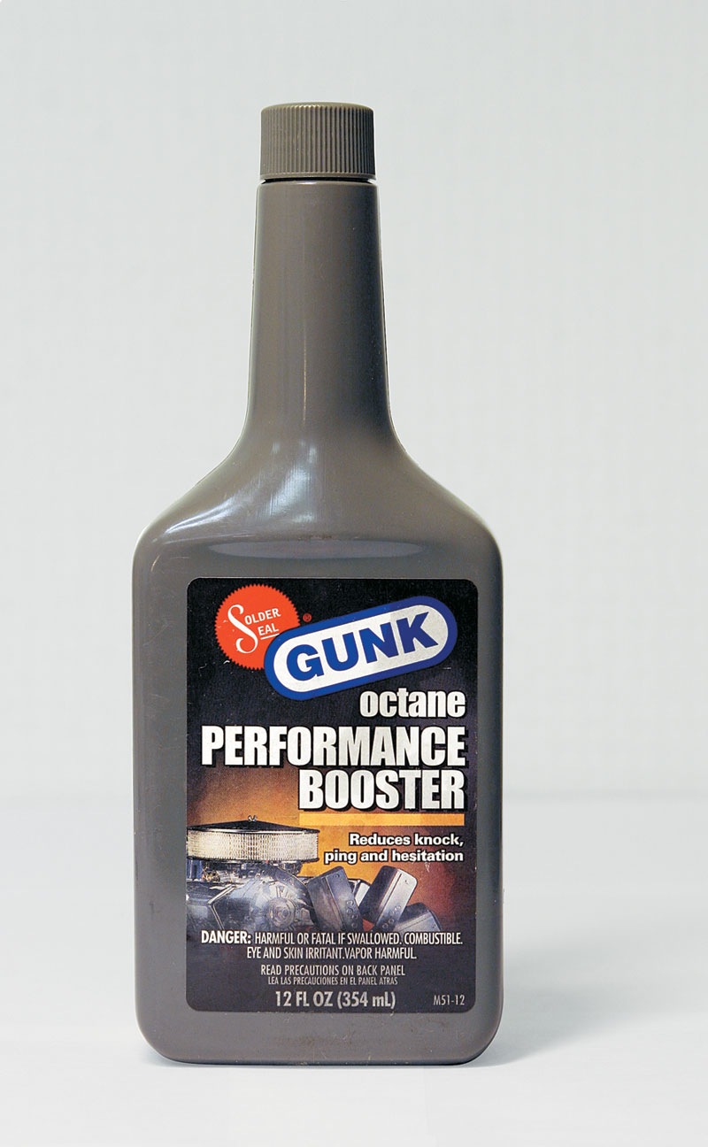 Gunk Octane Performance Booster (США) Прирост октанового числа — 0,2 Активные компоненты не обнаружены Рекомендуемая пропорция — 8,85 мл/л Эффективность присадки практически нулевая, несмотря на самую большую рекомендуемую концентрацию