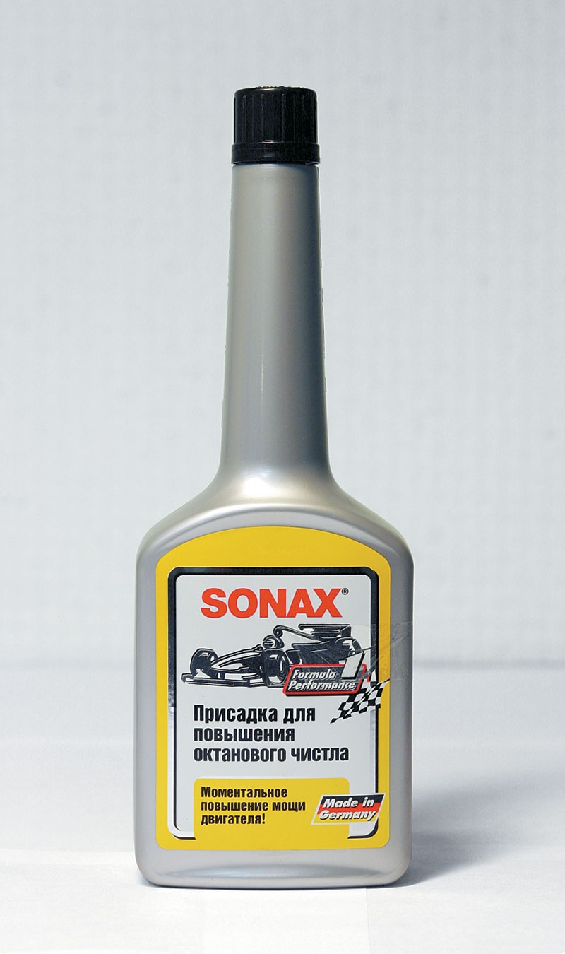Sonax Присадка для повышения октанового числа (Германия) Прирост октанового числа — 0,3 Активные компоненты не обнаружены Рекомендуемая пропорция — 6,25 мл/л Присадка малоэффективна