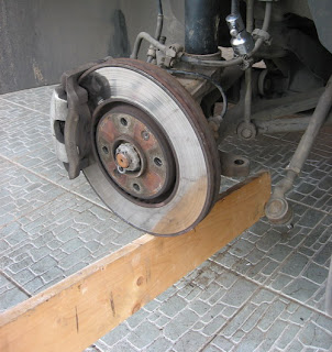 Итак замена. Что бы добраться до подшипника нужно снять и разобрать стойку. процесс не фотал, так как не было свободных чистых рук: