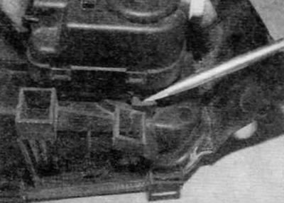 Рис. 7.5, а. Для снятия электродвигателя приподнимите выступ и поверните электродвигатель на 90°.