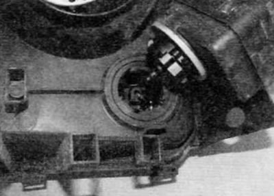 4. Рассоедините электрические разъемы электродвигателя коррекции наклона света фары и лампы фары и снимите фару с автомобиля (рис. 7.4).