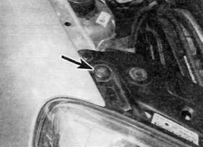 Рис. 7.10, в. . и верхний винт (отмечен стрелкой) крепления фары (поздние модели)