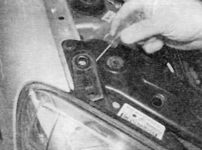11. С помощью маленькой отвертки слегка приподнимите верхний опорный рычаг, чтобы отцепить стопорную лапку, и снимите фару (рис. 7.11).