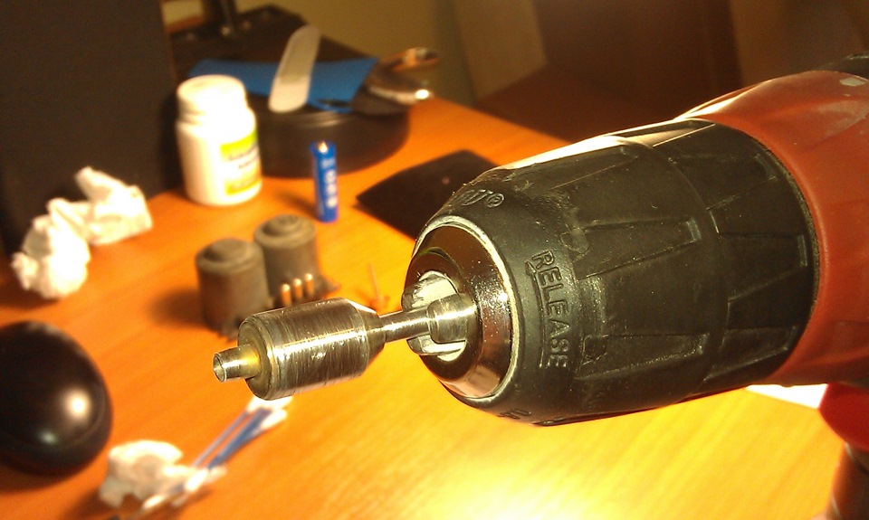 Обворачивайте толкатель шкуркой и начинайте сверлить 🙂 через 10сек, поверхность как новая 🙂