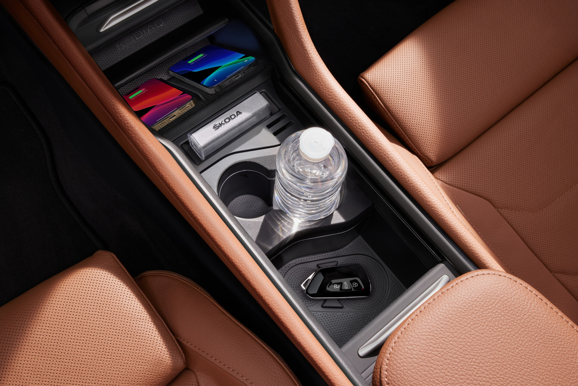 В оформлении салона дизайнеры пошли по пути эволюции: «гантель» передней панели сохранена, но центральный тоннель полностью освобожден под боксы для хранения мелочей. Приборная панель теперь виртуальная, на десятидюймовом экране без козырька. Тачскрин медиасистемы может иметь диагональ 10 или 13 дюймов в зависимости от комплектации. Как и у других новых моделей концерна Volkswagen, селектор трансмиссии переселился на рулевую колонку («механики» у Кодиака больше не будет).