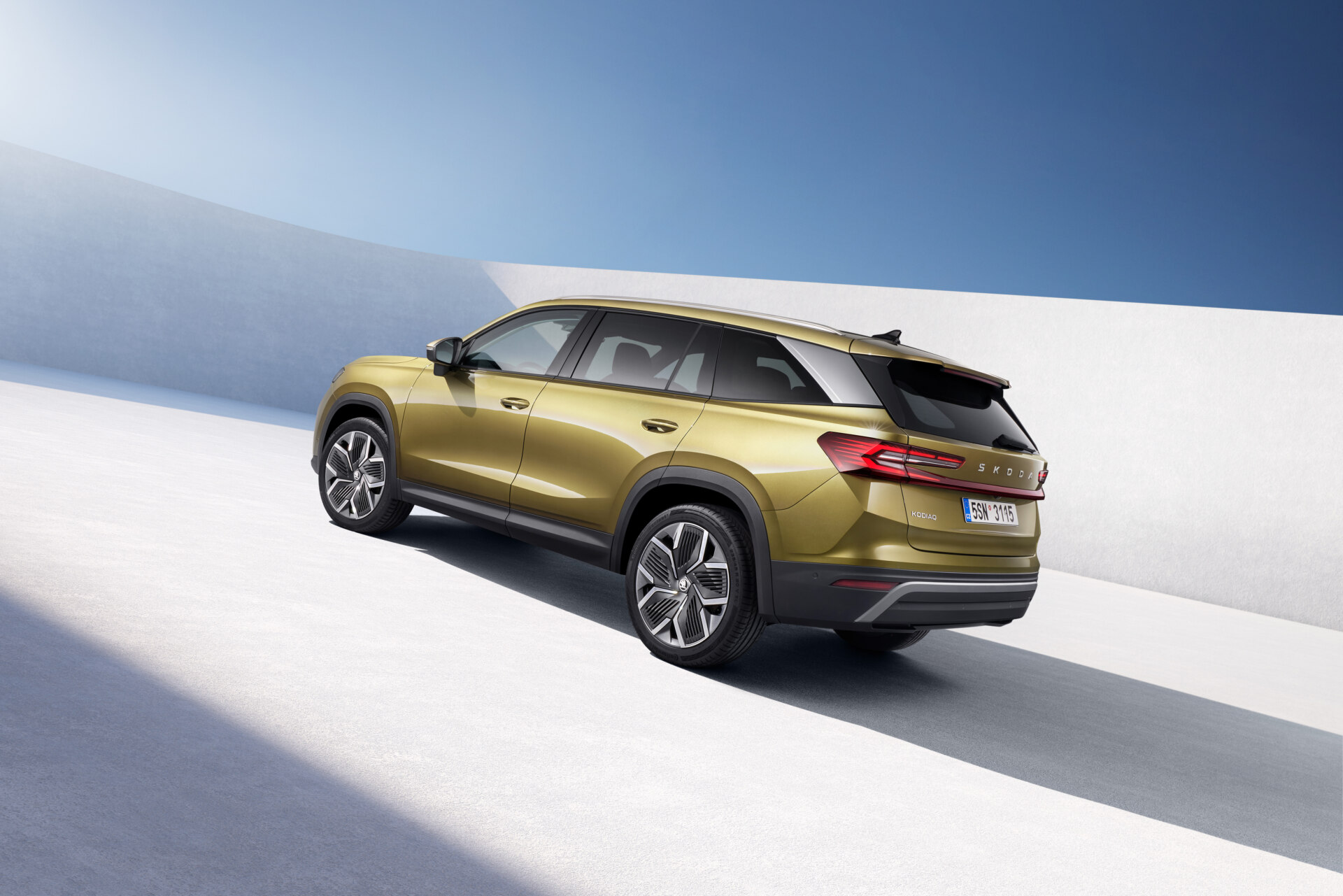 Снаружи Kodiaq не выделяется из модельного ряда марки, обводы передка узнаваемы, «двухэтажная» оптика не только дань сегодняшней моде, но и развитие идеи предшественника. Силуэт кроссовера стал более динамичным благодаря восходящей подоконной линии и большой хромированной накладке на задней стойке. Задние фонари соединены светящейся полосой. Коэффициент аэродинамического сопротивления удалось снизить с 0,32 до 0,28. В гамме сразу есть версия Sportline с легким спортивным декором.