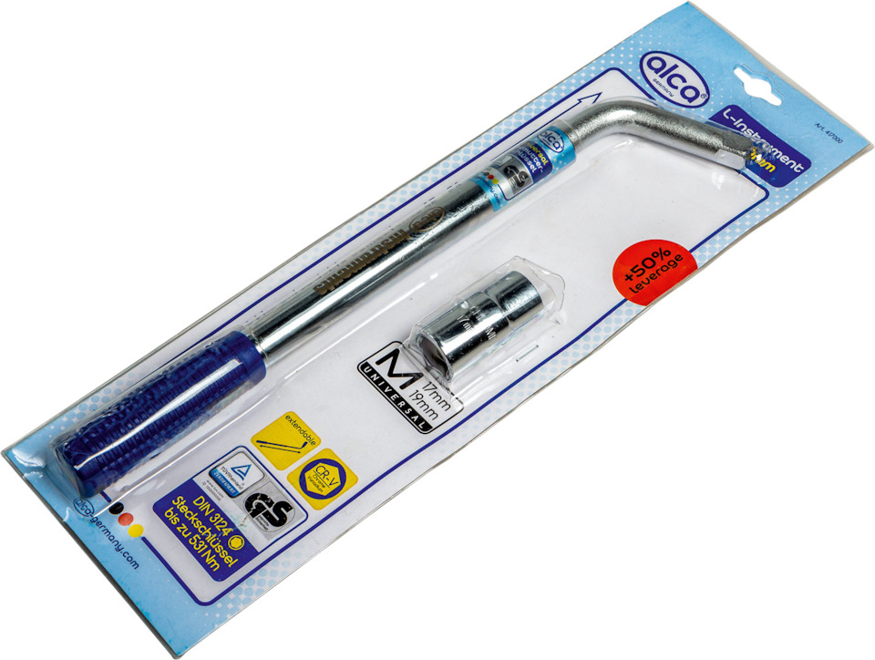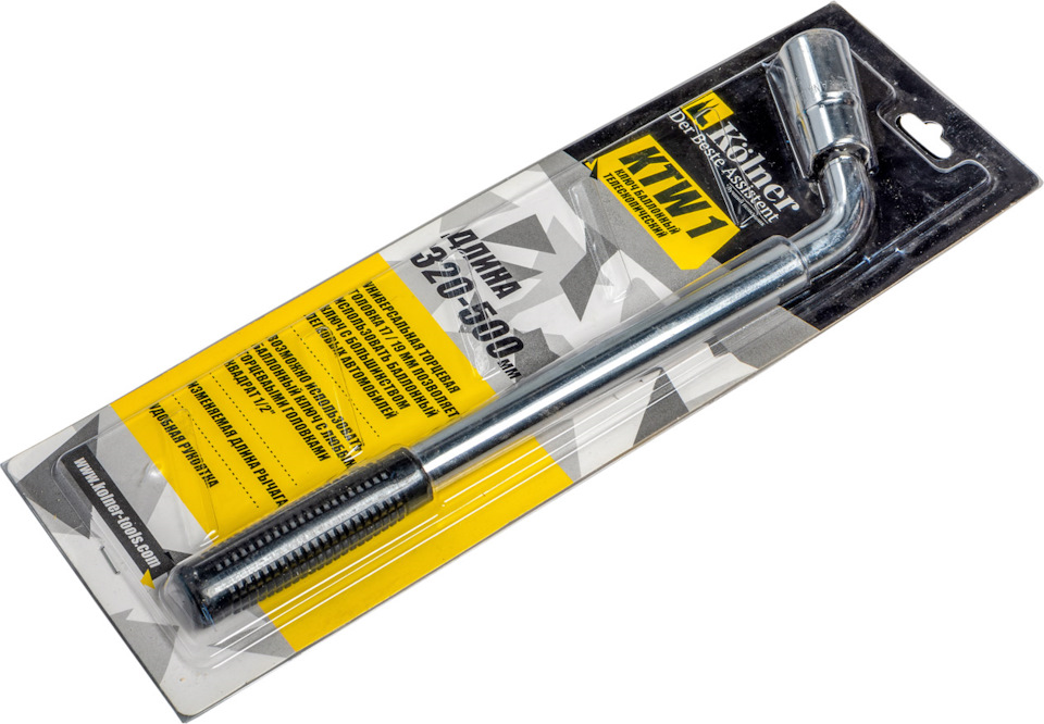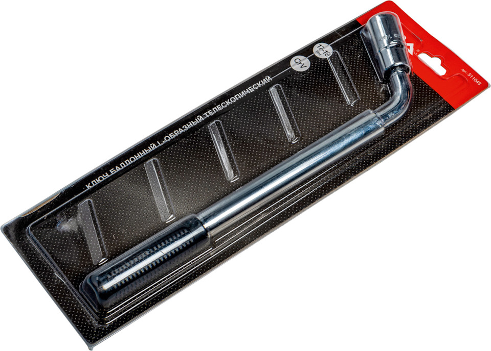 Родина бренда — Россия, в настоящее время страной производителем является Китай. Ручной L-образный ключ можно часто встретить в шиномонтажных мастерских и салонах обслуживания автомобилей, ключ подойдёт также для индивидуального использования в собственном гараже. Модель выполнена из инструментальной стали высокой прочности. Этот материал проверен годами, поэтому нисколько не стоит сомневаться в его износостойкости даже при постоянной эксплуатации. Надёжный помощник при монтажных работах никогда не подведёт. Для облегчения манипуляций с крепежом длину ключа можно менять. Длина ключа — 425 мм, масса —1.04 кг. Такие габариты не создают неудобства при размещении в багажнике.