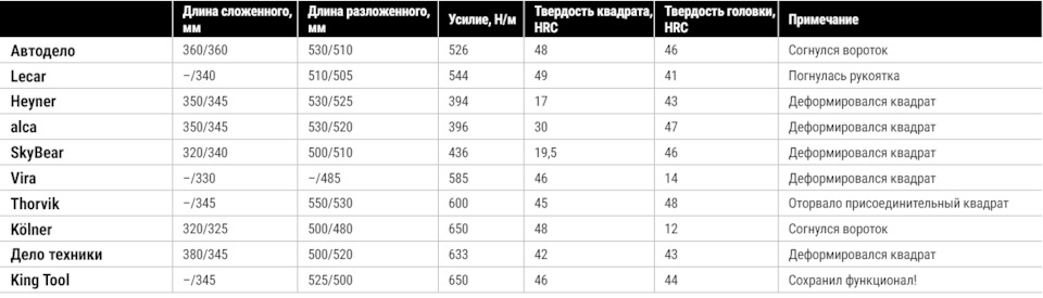 Не соответствуют по поверхностной твердости квадрат ключа Heyner, который имеет твердость меньше 18 HRC, SkyBear — 19,5, Alca — 30 HRC. После замера твердости головок выяснилось, что Vira и Kölner явно экономят — головки вообще не имеют никакой закалки.