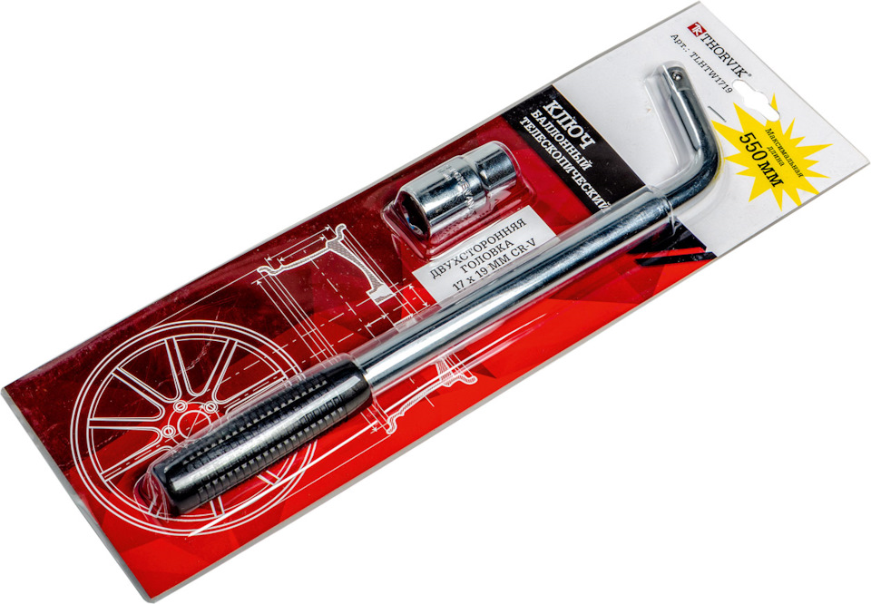 Помимо вышеперечисленных наборов, следует также рассмотреть популярный ключ 52508 от производственной организации Thorvik. Данное изделие выполнено в стандартном Г-образном виде с размером в 17×19 мм и хорошей длиной 570 мм. В наличии несколько дополнительных насадок. Существенный недостаток — небольшой люфт и определенные проблемы с фиксацией ключа в случае неудобного положения.