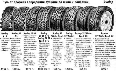Решения были неожиданными – Dunlop пытался использовать «эффект щётки», выпустив шины «Winter Winner» с кусками стальной проволоки, вставленными в протектор вертикально, велись разработки конструкций с эффектом «присоски» — небольшими отверстиями в зоне контакта, якобы создающие вакуумное разрежение и улучшающими сцепление на льду.