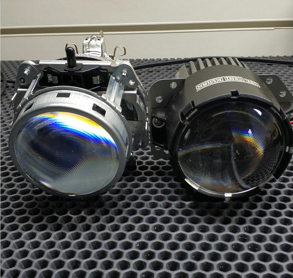 Поскольку понятие красоты у каждого свое, останавливаться на рассмотрении вопроса замены линз ради тюнинга мы не будем, а лучше обсудим установку линз вместе с ксеноновыми лампами. Чтобы повысить качество света фары установка линз будет самым верным решением. С помощью би-ксеноновых или моно-ксеноновых линз можно значительно повысить яркость приборов и скорректировать световой пучок именно на дорожном покрытии. Говоря простым языком-фары светят только на дорогу, они не слепят встречных водителей, а поток направлен по горизонту и в стороны, для максимального охвата. В зависимости от возможностей можно выбрать ксеноновые или би-ксеноновые линзы, которые отличаются имеющейся подвижной шторкой для ограничения потока света фар.