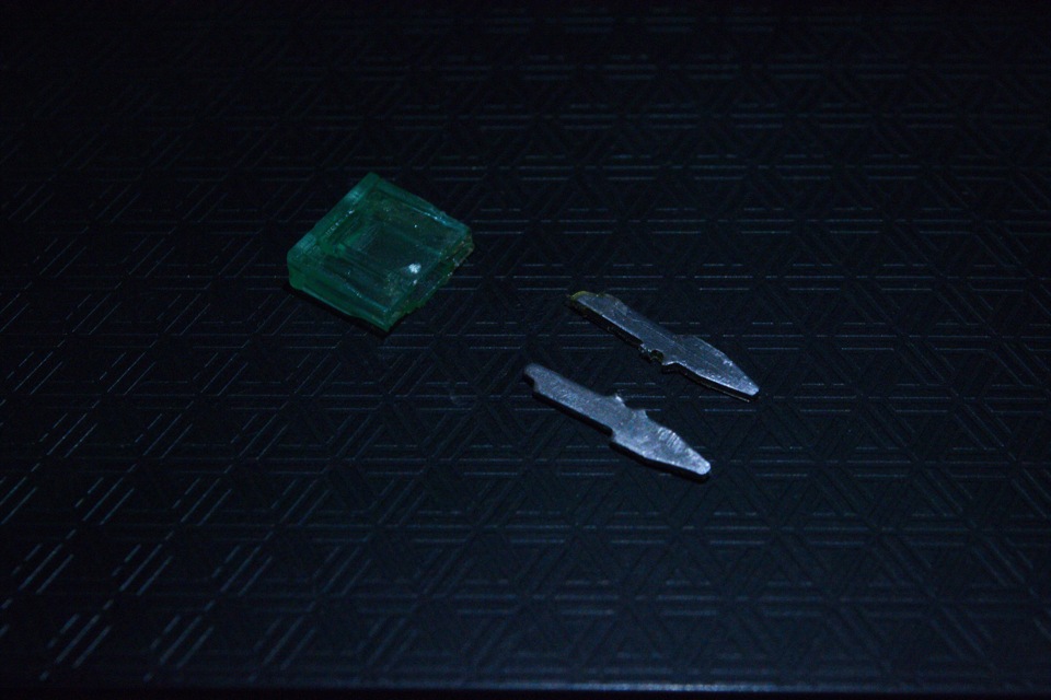 Вынимаем его. После этого я взял такой же предохранитель, мощность любая, главное чтобы размеры совпадали, разобрал его и сломал Я вытащил плоскогубцами ножки-контакты из зелёного корпуса, корпус остался целым.