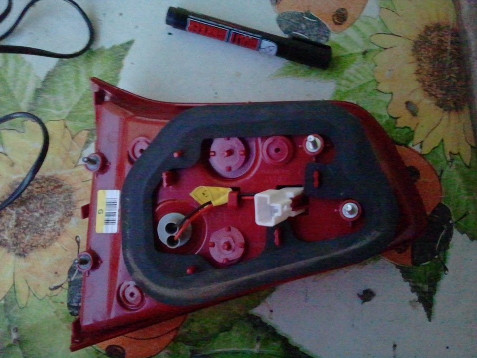 Прикручиваем стоп-сигнал на место и подсоединяем, плюс берём со среднего провода на разъеме(их там всего 3) он специально выведен корейцами под нашу доработку, как ни странно=)