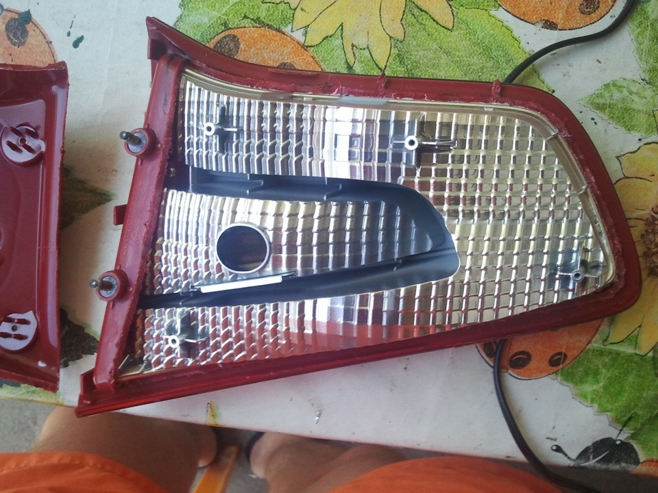 Затем самое печальное, как мне показалось, это сборка, сначала надо вставить отражатель на место, да так, чтобы защелкнулись все защелки, у меня это вышло с пятого раза (нервов потратил), затем закручиваем болтик отражателя, надеваем красную крышку(не забываем продеть наружу провода от диодов) и прижав её начинаем запаивать фару обратно, на втором видео в начале записи показано как это делается, просто кладем паяльник плашмя и немного нажимая делаем шовчик, у меня вышло вот так