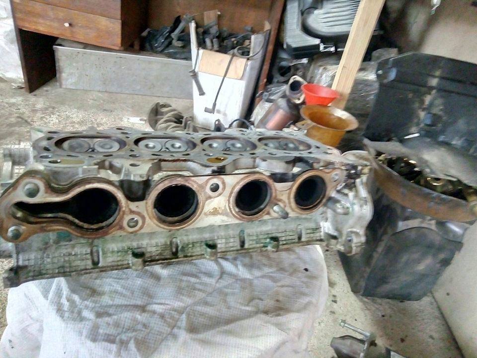 Все началось с того, что машину перегрели она закипела и утек соответственно антифриз. девочка поехала в сервис, там ей поменяли помпу, радиатор и термостат, можно сказать решили всех зайцев убить сразу, но все таки последствия перегрева остались. ей сказли что надо сделать теперь полную капиталку двигателя) Вот так интересно . а там озвучили кругленькую сумму, вообщем так она и оказалась в моих руках. Действительно перегрев просто так не прошел мимо, пришлось делать конечно не капиталку но прокладку гбц поменяли ну и сопутствующие расходники, шлифовка, прокладки впуск, выпуск, герметик для крышки грм и поддона виктор рейнз.