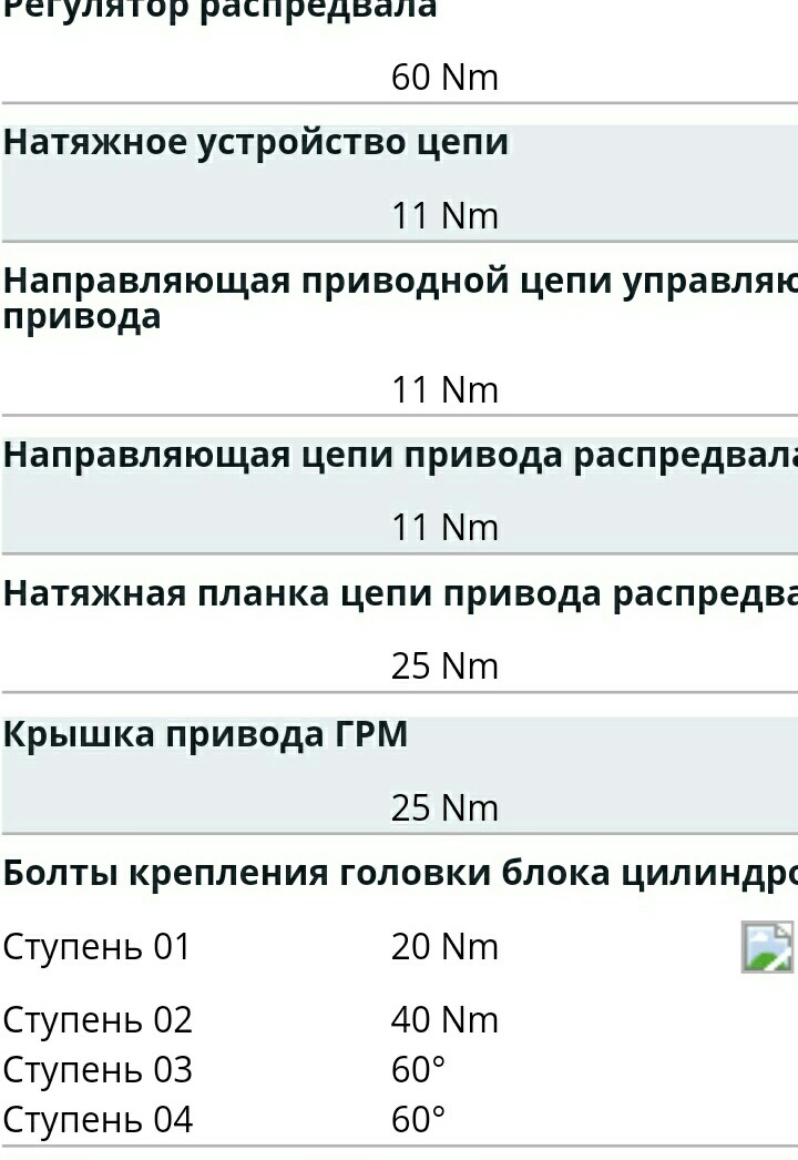 Момент затяжки болта регулятора натяжителя цепи привода механизма газораспределения (a): 11 Н·м.
