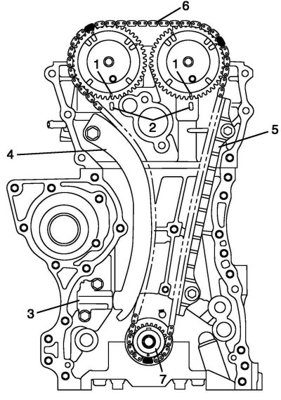 Снятие и установка цепи привода механизма газораспределения и натяжителя цепи