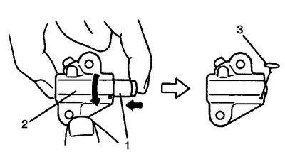 Вверните плунжер 1 вращением регулятора натяжителя цепи привода механизма газораспределения 2 в направлении стрелки и установите фиксатор 3 (проволока) для удержания плунжера на месте (рис. 2.77).
